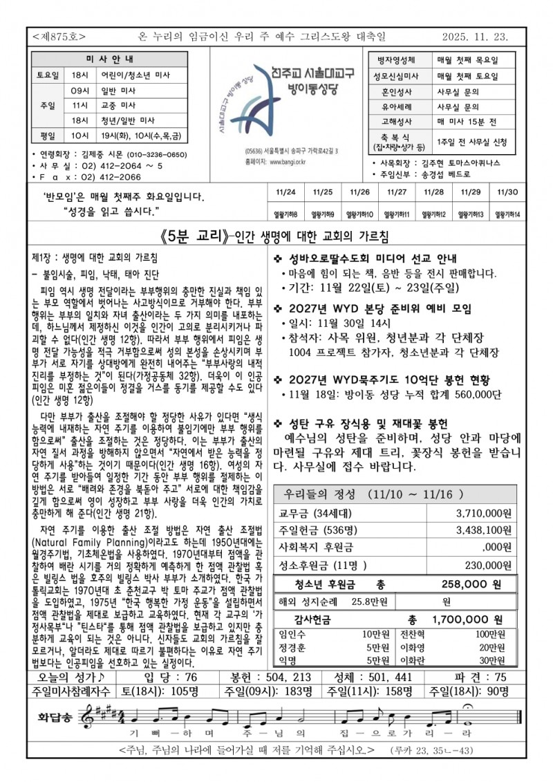 2025.11.23 온 누리의 임금이신 우리 주 예수 그리스도왕 대축일 <제 875호>